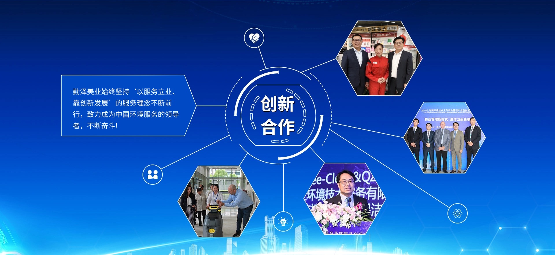 公司致力于把“勤澤美業(yè)”培育成眾口皆碑、令人尊敬、具有長期價值的服務(wù)領(lǐng)袖品牌。業(yè)務(wù)范圍涵蓋環(huán)境清潔和綜合設(shè)施管理服務(wù),公司具備環(huán)衛(wèi)、保潔、石材等多個行業(yè)一級資質(zhì),致力成為中國環(huán)境服務(wù)行業(yè)的領(lǐng)導(dǎo)者。